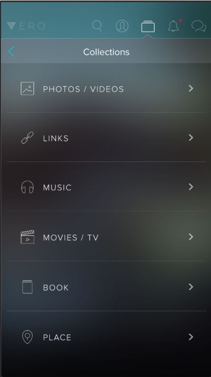 This page is the content creation page. From here, you can select what you’d like to share. Check out Versus Vero to see a break down of what all you can share on Vero and why it’s different.