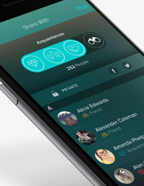 Here, you can see the options of sharing. This is one of Vero’s UVPs. It allows you to share what you want with who you want, instead of blasting it out to the world. If you check out the article “Truth in who it Targets” listed above, you can see why the audience they target might be keen on this aspect.