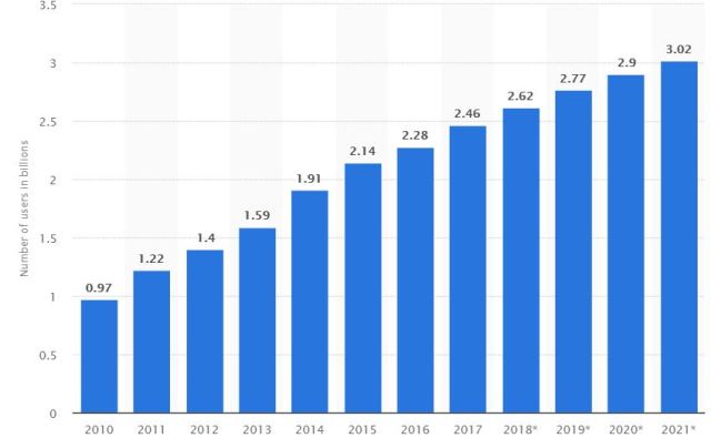 Social media is now more prevalent than ever in this society. It isn’t necessarily a bad thing either. It has given people a chance to connect around the world, it has given people a chance to express themselves freely and it’s also been a gateway into a career for countless individuals. And as you can tell in this graph, its growth is not projected to slow down.